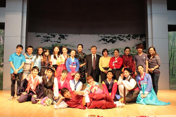 14日,韩国外国语大学孔子学院中文话剧《春香新传》在我校首演并取得圆满成功。时值中韩建交20周年之际,韩国外国语大学孔子学院为中文系社团“中演会”的同学们特别开设了《演话剧,学汉语》课程,用现代汉语改编了韩国的经典著作《春香传》,将其更名为《春香新传》,此次在校团委和国际合作与交流处的协助下来我校进行交流演出,得到我校师生的好评。