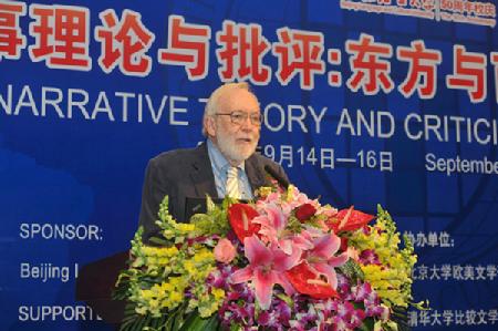 美国著名文学批评家希利斯·米勒的发言题为“传奇、创伤、现实主义”,以英国当代作家伊恩· 麦克尤恩的小说《救赎》为例剖析了创伤、罗曼斯与现实主义在西方后现代小说中相互交织的关系,提出当下叙事学界颇为关注的问题,即:“创伤”是否是有助于研究西方后现代小说的一个关键词。米勒的发言将细致的文本分析与弗洛伊德关于创伤的心理学理论相结合,于细微之处揭示了后现代小说的特质。美国著名文学批评家及叙事学研究专家詹姆斯·费伦的发言 “超越故事与话语:走向叙事交流的修辞学和伦理学”,提出了一种新的叙事学研究范式,强调叙事不仅仅是话语功能的实现更是隐藏着伦理动机的话语选择机制,费伦的这一新观点在某种程度上也是对他先前提出的关于“作为修辞的叙事”之理论观点的重要的补充。北京大学教授申丹的发言“关于隐含作者的再思考”,全面介绍了目前国际叙事学领域对于“隐含的作者”这一概念的激烈争论,并从多个角度对其进行深层次的反思和挖掘,从而把批评界对这一叙事学核心概念的理解和运用引向深入。清华大学教授王宁的发言“再访中国后现代小说:先锋派实验”,较为详尽地追述了中国现代小说在创作技法、主题和叙述模式上由现代主义向后现代主义的发展和演变过程,指出中国的先锋小说不仅仅是国际后现代主义的一部分,而且已经形成了其自身具有本土特色的创作传统。耶鲁大学教授克劳德·罗森的发言 “小说与沉默:不可言说的仪式个案解析”,以康拉德的中篇小说《黑暗的心脏》中的一个关键词 (“不可言说的仪式”)入手,深入探讨了文学作品中表现种种残酷的仪式的主要叙事模式,从而揭示了藏匿在西方传统作品的中的“不可言说的仪式”及其对传统的明晰叙事方式的挑战。北京语言大学教授宁一中的发言“走向评点学”(Towards a Commentology),提出了要将我国传统的评点批评进行更为系统的理论化的研究,从而向国际推出独具中国特色的叙事理论——评点批评模式,让古老的东方批评方法在国际叙事学领域发出声音并焕发新的生机。北京第二外国语学院的胡继华教授的发言“叙事艺术中的象征意义:托马斯·曼的《浮士德博士》”,从修辞和话语层面强调了象征手法在叙事艺术中的重要意义。澳大利亚文学批评家、麦克利大学教授尼克·曼斯菲尔德的发言“时间脱节:不匹配的个人与历史叙事”,借鉴德里达对于线性时间的解构,指出前进性的历史时间正在被断裂性的现代叙事时间打破,从而指出叙事研究从全球一体到地域特色转变的可能性。
