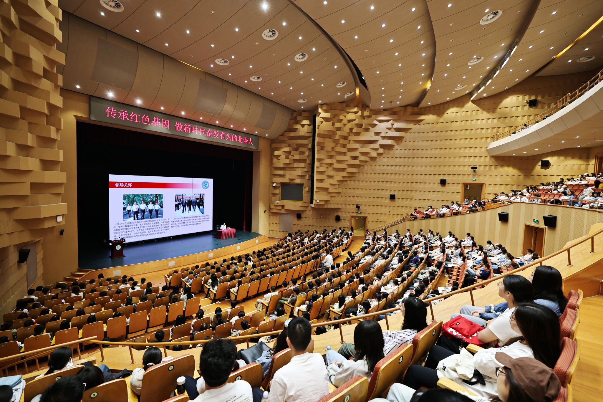 段鹏校长从北语六十余年的办学历程出发,通过丰富详实的文字和图片资料带领同学们回顾了北语在服务国家外交大局和国际中文教育事业中作出的独特贡献。他指出,北语的成长始终与新中国的发展同频共振:从延安时期语言教育的初步探索,到建校初期承担来华留学生中文教学的重要使命,再到今天成为服务国家战略、促进文明互鉴的重要平台,学校发展的每一个阶段都深深镌刻着家国情怀与时代烙印。六十三年来积淀形成的红色基因,既体现在“为党育人、为国育才”的办学初心中,也彰显在“语言报国、文化兴国、人才强国”的价值追求中。正是在这样的精神滋养与使命驱动下,一代代北语人砥砺前行,构建起多学科协调发展、国际声誉日隆的办学新格局。