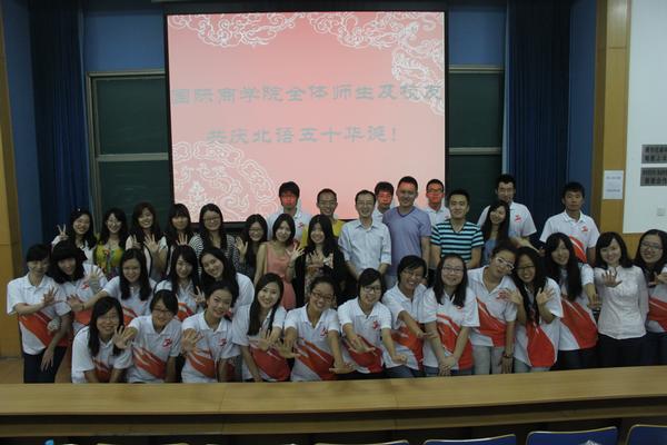9月9日,国际商学院在校庆日分会场主南200教室举行了“祝福北语·寄情商院”校庆日系列活动,诚邀广大校友返校,共同庆贺我校50周年华诞。国际商学院领导、老师出席了此次活动,两百多名校友及数十名在校生参加了此次活动。上午8点开始,校友陆续到达会场,他们在纪念册上写下对母校的寄语并签名。9点,全体师生及校友在分会场一同观看校庆庆典转播。庆典结束后,校友们在工作人员的带领下参观了位于图书馆的校庆展览,对母校50年来的发展历程有了更深入的了解。