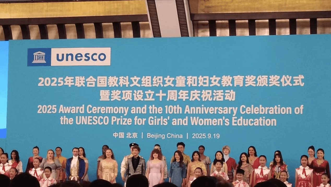 北语新闻网9月24日电(通讯员 全莹 摄影 全莹)2025年联合国教科文组织女童和妇女教育奖颁奖仪式暨奖项设立十周年庆祝活动于9月19日下午在北京举行,国家主席习近平夫人、联合国教科文组织促进女童和妇女教育特使彭丽媛同联合国教科文组织总干事阿祖莱共同出席并致辞。