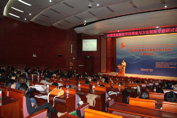 年9月4日上午,由北京语言大学主办、北京语言大学汉语学院承办的“汉语国际教育学科探索与方法创新”专题研讨会在北京语言大学逸夫楼一层报告厅开幕。本次研讨会是北京语言大学五十周年校庆系列学术活动之一,备受各方关注。来自国内外二十多所高校的50多位代表参加了会议,其中包括部分知名高校对外汉语教育学院的负责人及骨干、对外汉语教学领域知名专家,特别是在国内外汉语第二语言教学第一线工作的中青年教师。