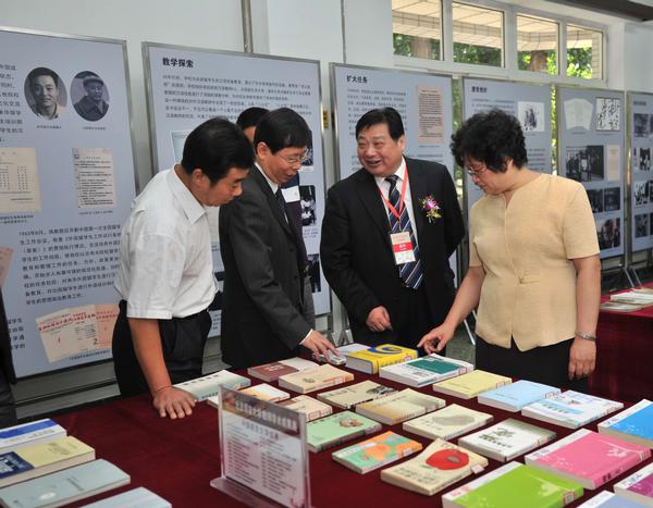 北京语言大学建校50周年校史展和教职工学术成果展开幕式于9月3日10:00在图书馆隆重举行,教育部副部长李卫红在校党委书记李宇明、校长崔希亮、党委副书记霍明杰陪同下观看了展览,校党政办宣传部、教务处、科研处、档案馆、离退休工作处负责人及中外学生代表等参加了开幕式。