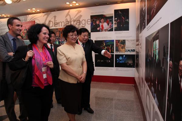 李宇明书记陪同李卫红副部长、法国驻华大使白林女士参观“中法语言年回顾展”