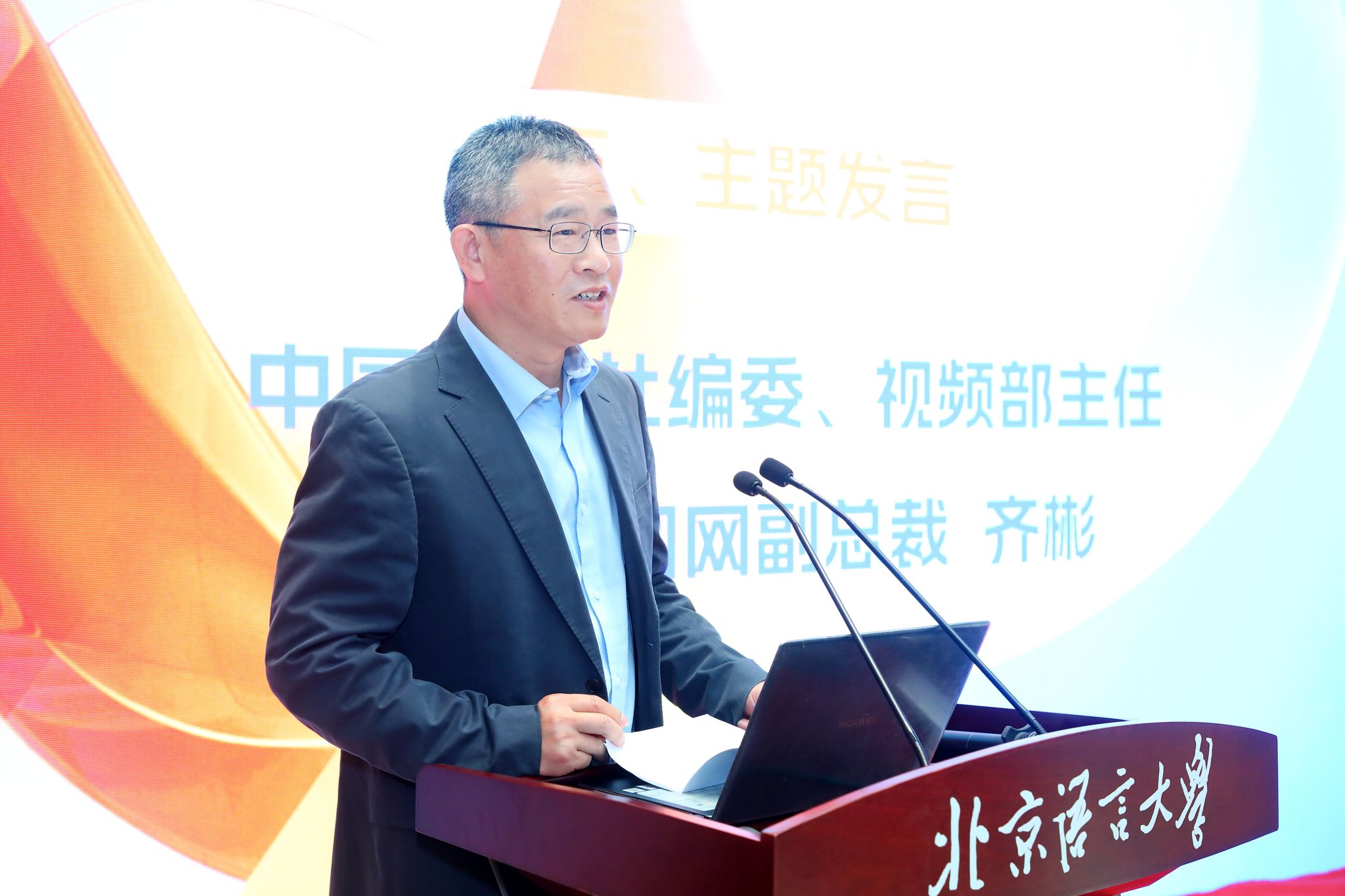 中国新闻社编委、视频部主任,中国新闻网副总裁齐彬结合北语与中新视频的合作作品,从国际传播由谁来讲、对谁讲、讲什么等五个角度出发,深刻剖析了高校做国传的可行性路径,并希望中新视频与北语的合作不断升华,开拓更多可能。