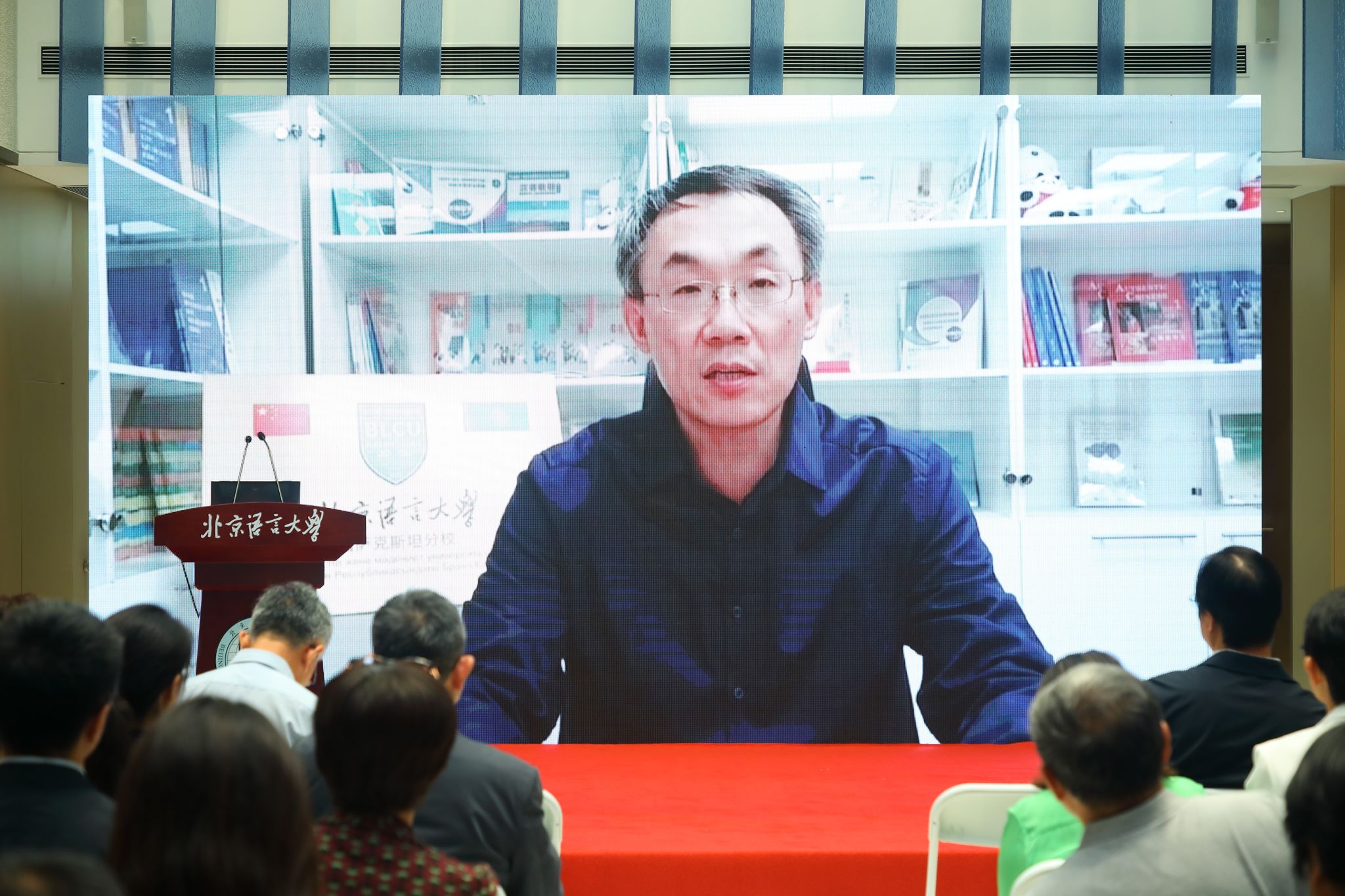 北京语言大学哈萨克斯坦分校中方院长刘现强在线上分享了分校在海外办学实践、传播中华文化、促进文明互鉴等方面的有益实践与思考,展示了北语分校在海外发挥支点作用,助力区域发展的重要意义。