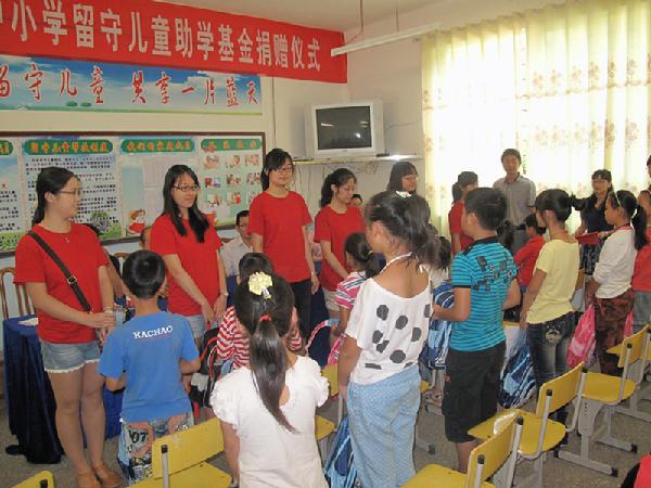 8月23日上午,由北京语言大学赴宜昌实践团队发起的“乐天溪陈家冲小学留守儿童助学基金捐赠仪式”隆重召开,夷陵区教育局、区资助中心、乐天溪镇政府、乐天溪镇中心学校以及来自北京语言大学暑期实践团队的大学生和12名陈家冲小学的留守学生代表参加了此次捐赠仪式。