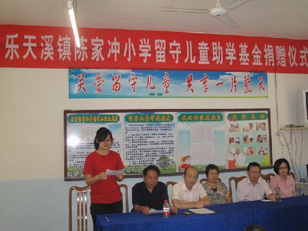 夷陵区区资助中心、乐天溪镇政府、捐赠人代表、陈家冲小学校长和陈家冲小学的留守儿童代表先后发言,爱心人士雷世猛代表捐赠企业表达了对留守儿童的关切之情以及对留守儿童们自强上进、取得优异成绩的殷切期盼。