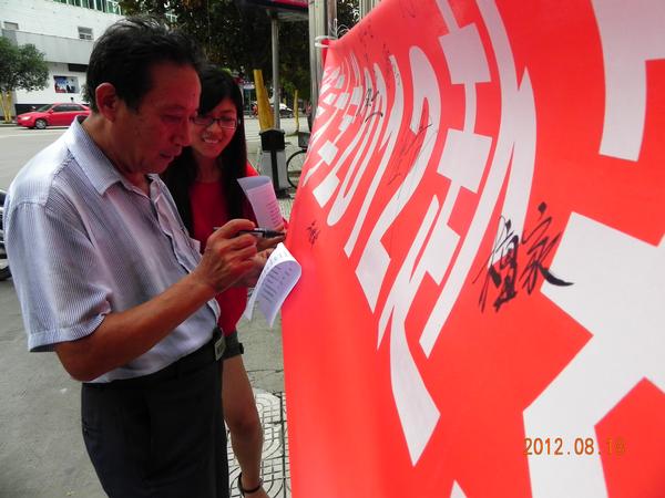 为了取得最好的效果,宣传地点选在了人流较多的县城中央街头。9名队员身着统一的红色队服,身后挂着印有团队名称的红色横幅和队旗,手中拿着印有英语基础口语会话的宣传单,很快吸引了市民们的注意。队员们向街头来往的市民们讲解宣传单上的英语口语常用法,并呼吁大家增强英语学习意识。在宣传过程中我们发现,即使是完全没有英语基础的市民,对英语口语也存在一定的兴趣。并且大多数市民的孩子正在学习英语,他们同样表示孩子英语口语的学习十分必要。为了表达对我们活动的支持,很多市民在我们的横幅上签下了自己的名字并与队员一道在相机中留下了笑容与身影。更有可爱的小朋友用英语与队员打招呼,稚嫩而认真的语气引起在场市民与队员们的阵阵笑声。队员们都真诚地祝福孩子学习进步,健康成长,更有一位母亲对自己的孩子说,“以后要像这些哥哥姐姐们一样,英语说得这么好。”