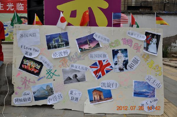 结合北语小联合国的特点,北语赴涞水实践团队为北郭下村的孩子精心安排了此次“北语风情游园会”,在设立绘画、手工成果展示板块的同时,引入亚欧风情展板,以期启发孩子们关注外面的世界。