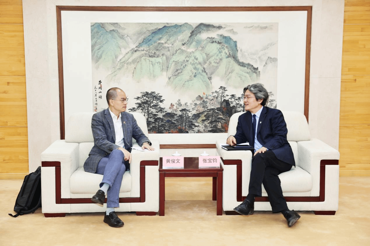 北语新闻网10月14日电通讯员 何知今 摄影 魏达)10月13日上午,张宝钧副校长在综合楼906会议室会见香港中文大学协理副校长(研究)黄俊文教授,双方就深化校际合作、拓展学术交流进行深入探讨。