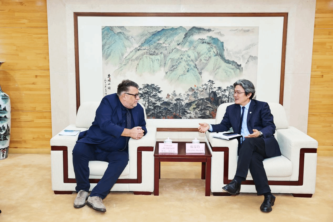 张宝钧副校长对樊尚・米什洛院长到访表示热烈欢迎,并系统介绍北语近年来发展成就。他指出,两校合作基础深厚、成果丰硕。今年6月,由北语和法语联盟共建的中法人文交流空间正式启用,该空间曾迎接法兰西共和国欧洲和外交部长让-诺埃尔·巴罗阁下现场考察,已成为中法文化对话的新地标。张宝钧副校长还重点推介了海南国际学院中外合作办学创新模式,强调续签两校交换协议是巩固合作连续性的关键一步,期待双方以此为契机,共同推动博士联合培养、师生高端互访等优质项目尽快落地。