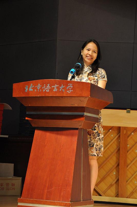 根据同学们这一学期的表现,汉语速成学院速成系评出了优秀学生等多个奖项。获奖的同学手捧奖状和奖品,脸上洋溢着喜悦。董玉国老师在颁奖时还不忘教书育人,给同学们上了最后一堂汉字课——告诉学生“进”、“步”的字源义。那充满激情的“进步!进步!再进步!”的鼓励又一次掀起了全场的高潮。随后,获得“北京市优秀来华留学生奖学金”的叶嘉富同学作为优秀学生代表发言,跟大家分享了来北京语言大学后的学习与生活经历,语言朴实而诚恳,在同学之中产生了共鸣。