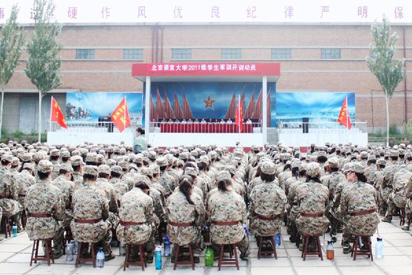 军训团团长乔治军对北京语言大学2011级全体参训学生做了开训动员。他热烈欢迎北语师生的到来,强调了军训的目的和意义在于强化同学们的国防观念和集体意识,培养同学们的爱国主义精神和吃苦耐劳品质。他要求同学们勇于吃苦,勤于训练,服从命令,听从指挥。