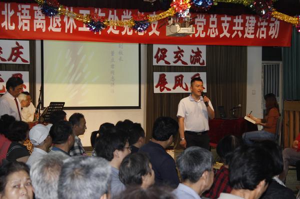 董立均副校长强调机关党总支与离退休党总支共建活动的重要性和必要性,并预祝此次活动必将达到预期效果。他说,大学的校园是由大师、大树、大楼、大爱组成,大树不是简单的校园中的树木,而是说北语人的传承和根基,在座的老同志就是北语的根基,如果没有前人的栽树,就没有我们后人的乘凉。如果把学校比喻成一颗大树,那么老同志是根,我们年青的一代就是树上的枝叶。愿根扎得越来越深,长得越来越粗大,枝叶越来越茂盛。本次活动是在“七一”之前和校庆五十周年之际的一次新老党员共建活动,通过此次活动增进了了解和友谊,薪火相传,让新老党员为北语的明天奉献力量。在此,祝愿北语老同志们身体健康!生活愉快!