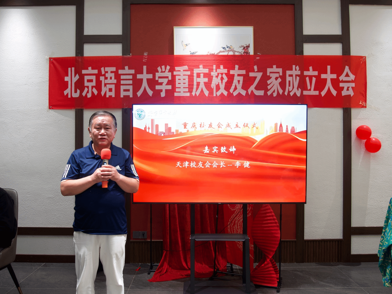 天津校友之家会长李健作为兄弟校友组织代表登台发言。他对重庆校友之家的成立表示衷心祝贺,并表示北语校友遍布全球,各地区校友组织不应是独立的个体,而应加强联动、互通有无,形成跨区域的资源共享网络。天津校友之家期待与重庆校友之家携手并进,共同助力校友事业发展,维护母校崇高声誉,让“北语人”的身份成为每一位校友的骄傲。
