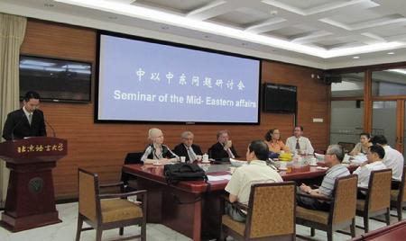6月26日,中以学术交流促进会代表团一行五人对我校进行了访问,并于下午一点在我校逸夫楼第一会议室参加了中以中东问题研讨会。