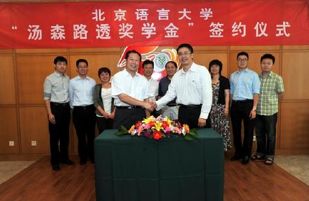 根据双方达成的协议,汤森路透每年向我校捐赠1.2万元,用于奖励日语、韩语专业和信息科学学院品学兼优的本科生各2人,每人每年2000元人民币。