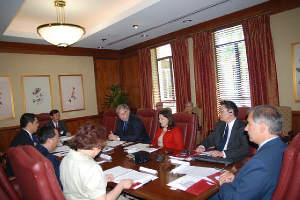 会议期间,双方代表分别讨论并通过了南卡罗来纳大学孔子学院2011年工作报告、2011年财务决算、2012年财务预算、孔子学院中长期发展规划、理事会人事调整、执行协议部分修订等议程,并就以孔子学院为平台,实施两校引智工作的可行性进行了有益的磋商。崔校长认真听取了中外方院长就孔子学院工作情况的汇报,就孔子学院文化活动的开展、科研合作、两校在学科资源上的整合、加强人员交流等事宜做了重要指示。崔校长充分肯定了南卡孔院近年来取得的成绩,对该孔子学院去年荣获国家汉办的“先进孔子学院”称号表示了祝贺。崔校长表示,南卡大学领导层给予了孔子学院大力支持,近年来在双方的密切配合下,孔子学院的业务规模不断扩大,活动内容和形式不断创新,特别是在汉语学历教育方面取得了很大成绩。崔校长殷切地期望未来南卡罗来纳大学孔子学院继续发挥辐射周边的作用,成为本地区汉语教学的中心之一。帕斯提蒂斯校长对与北语的合作感到愉快,认为孔子学院的建设对南卡罗来纳大学自身的学科建设及国际化发展有很大的促进作用。南卡罗来纳大学非常重视与北语的合作关系,重视未来与中国的合作,也将继续加大对中国学研究的投入力度。