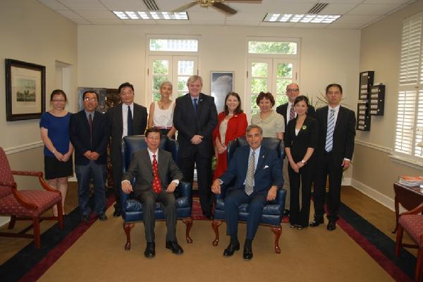 理事会召开之前,崔校长等一行考察了南卡罗来纳孔子学院的办学设施,与我校师生及志愿者进行了亲切会谈,了解他们的工作和生活情况,勉励他们克服困难,勇于创新,维护好孔子学院的发展局面,为汉语国际教育事业做出自己的贡献。