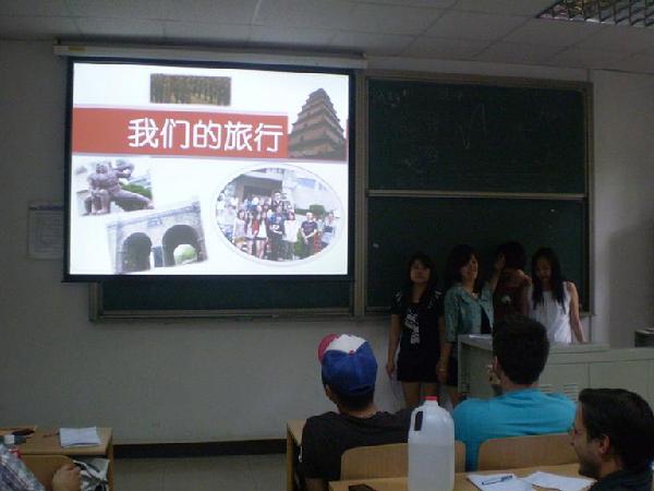 出发前,学生们收集了许多相关的文化知识,每个人承担了不同的导游任务,利用多种形式在旅途中用汉语为同学们讲解,既锻炼了学生的汉语表达能力,也增加了语言实践活动的趣味性。各班老师在旅行途中开设了“流动课堂”,在大巴上、火车上随时对学生感兴趣的问题进行讲解。在大巴上,学生们也积极踊跃地回答老师准备的各种历史文化问题。活动结束后,学生们以口头和书面的形式做了班级内部以及不同等级之间的语言实践汇报,汉语表达的能力得到了进一步提高。
