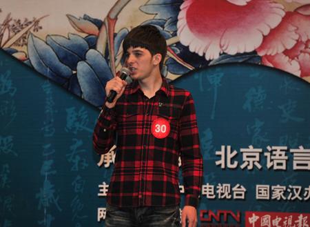 经过第一轮面试,我校埃及学生馨玥和塔吉克斯坦学生米禄以扎实的语言功底与出色的才艺展示征服了现场的评委与观众,使比赛气氛两度到达高潮,直接晋级。在第二轮待定选手的选拔中,我校俄罗斯学生大卫不负众望,凭借出色的发挥再添一张决赛入场券。最终我校共有3位选手进入决赛,在所有参赛高校中位居第一。另有来自中国传媒大学、中国人民大学、清华大学、对外经贸大学、北京师范大学的5名选手晋级决赛。