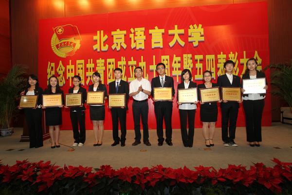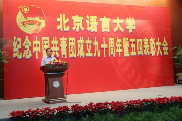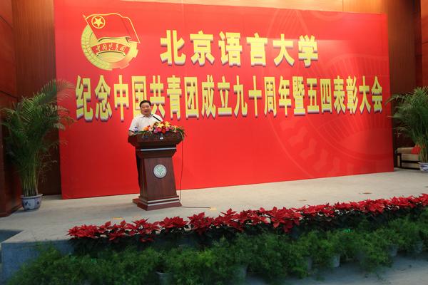 5月23日晚,我校纪念中国共青团成立九十周年暨五四表彰大会在逸夫报告厅隆重举行。校党委书记李宇明、北京团市委副书记杨海滨、校党委副书记赵旻、北京团市委大学中专工作部部长张秀峰出席大会,学校相关职能部门和各学院领导、受表彰代表、中外青年代表共200余人参加。
