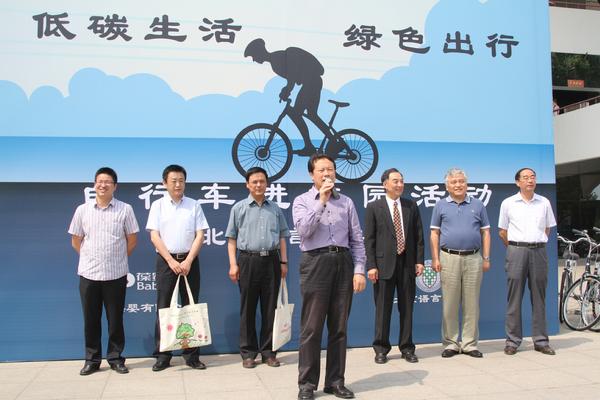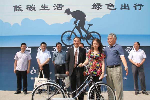 我校是继北京师范大学、清华大学之后第三个荣幸获赠百辆自行车的高校。捐赠仪式上,获赠自行车的中外学生代表以及优秀志愿者们在我校志愿服务总队的悉心组织下纷纷到场。
