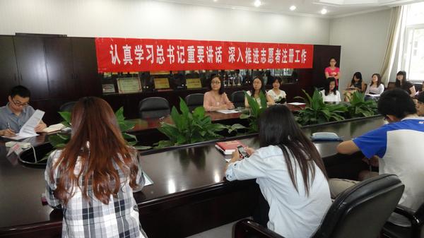 校团委书记在会上提出要健全志愿服务长效机制、加强志愿者队伍建设,促进志愿者管理工作的规范化、制度化,强调了共青团组织和团员青年在志愿服务工作中的重要作用,并提出依照《北京市志愿者管理办法》的相关要求,以“实现团员青年成为注册志愿者比例100%,各级团组织注册为青年志愿者组织100%”为目标,依托“志愿北京”信息平台,推进并落实我校青年志愿者实名注册工作。