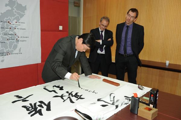 最后崔校长为北京法语联盟题字,结束了此次访问。