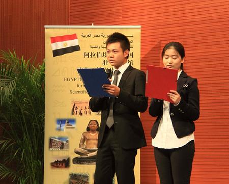 阿拉伯埃及共和国驻华大使馆文化教育处参赞穆罕默德-贾比尔先生以及旅游事务参赞纳塞尔先生分别发表了热情洋溢的讲话,表达了对双方进一步增进文化交流的期望及对此次活动的肯定,并对北京语言大学组织此次活动表示感谢。此外,我校阿拉伯语专业韩家瑞教授代表我校阿语专业师生发表了讲话。