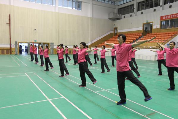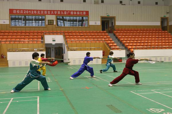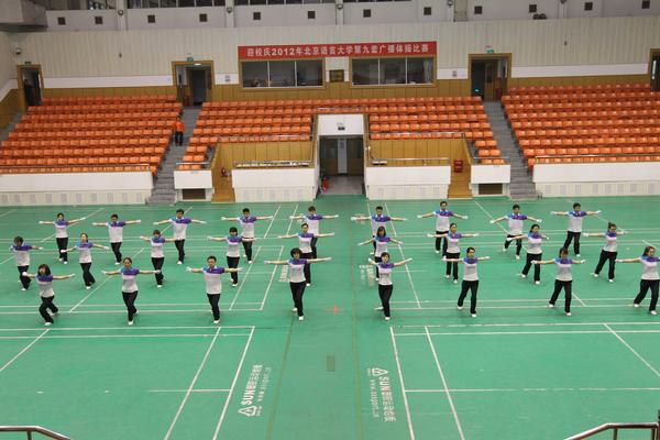 5月11日下午,迎校庆2012年北京语言大学第九套广播操比赛在逸夫体育馆举行。我校副校长董立均、校工会主席林国立等出席比赛。离退休工作处、校机关、人文学院、汉语学院、汉语速成学院、汉语进修学院、外国语学院、信息科学学院、高级翻译学院、出国留学人员培训部、后勤服务集团、网络信息与技术教育中心、英语教育中心13支代表队参加此次比赛。我校还邀请了来自北京体育大学的专业裁判组成裁判团。