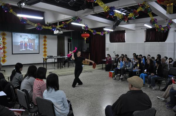 接下来进行的是校史知识竞答环节。本环节形式活泼、新颖,分红蓝两队,新老党员合作答题。大家通过答题,共同回顾了北语校史,加深了对北语历史的了解。答题环节穿插了精彩的才艺表演。老党员们献上了乐器合奏、诗朗诵、京剧演唱等节目,学生党员们也表演了武术、舞蹈等节目,现场气氛热烈。
