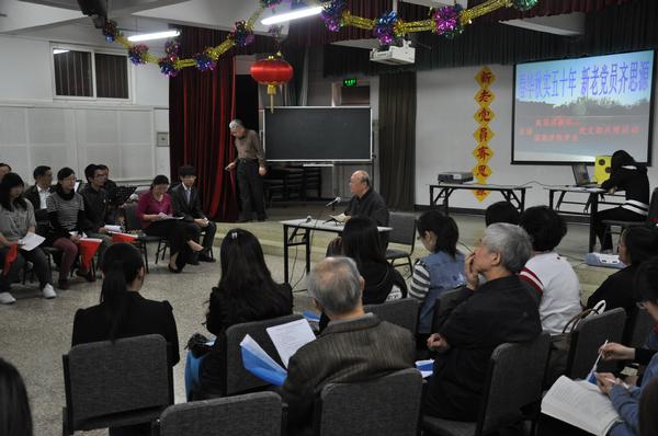 为庆祝北京语言大学成立50周年,4月27日下午,国际商学院学生党支部与北语离退休处党支部在老干部活动中心开展了“春华秋实50年 新老党员齐思源”支部共建活动。