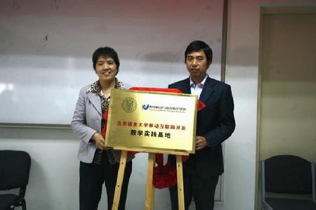 刘伟处长与耿赛猛副总经理为“北京语言大学移动互联网开发教学实践基地”揭牌
