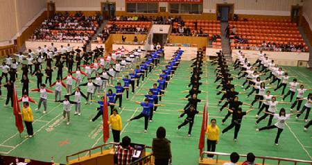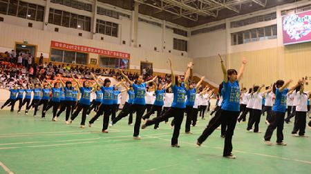 为迎接我校50年华诞营造活跃的校园体育文化氛围,进一步推进我校阳光体育运动的开展,培养学生团结协作和集体主义精神,丰富学生的业余文化生活,我校于4月20日下午在逸夫文体馆举行了中国学生的第九套广播操比赛。