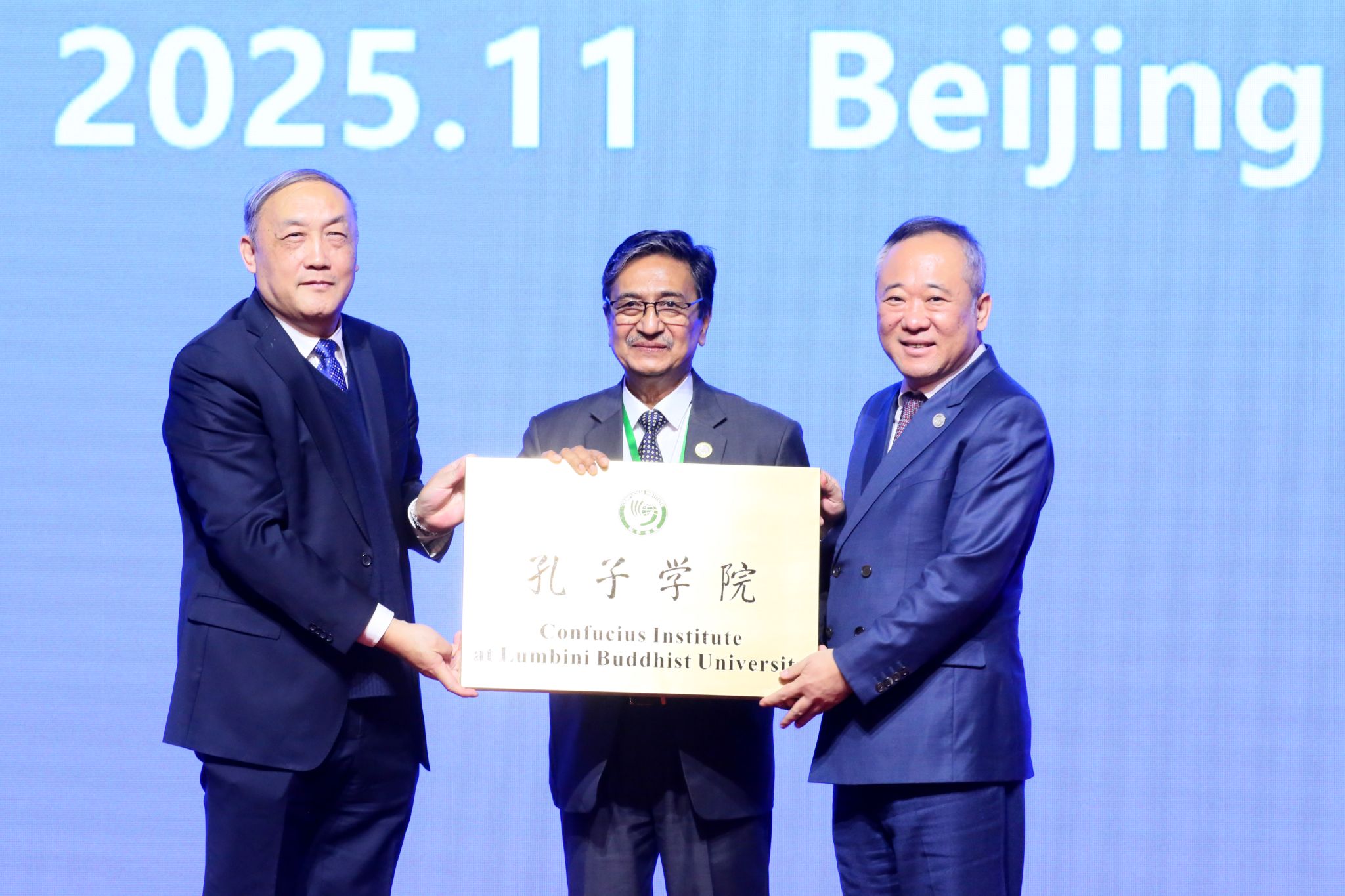 作为新时期我校孔子学院建设、推动中文教育国际化发展的最新成果,尼泊尔蓝毗尼佛教大学孔子学院授牌仪式同期举行。中国国际中文教育基金会理事长杨卫向段鹏校长和尼泊尔蓝毗尼佛教大学校长苏巴尔纳·拉尔·巴贾拉查亚(Subarna Lal Bajaracharya)授牌。孔子学院由北京语言大学和尼泊尔蓝毗尼佛教大学合作共建,旨在服务尼泊尔日益增长的中文和中国文化学习需求,助力两国经贸关系的发展,推动中尼两国民心相通。