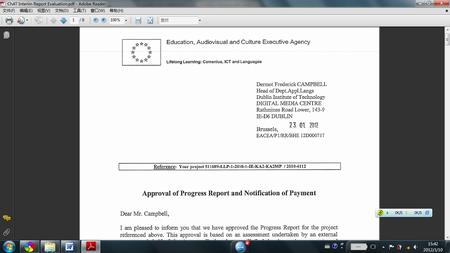 日前,欧盟欧洲委员会终生学习ChAT项目负责人、都柏林理工学院(DIT)高级研究员坎贝尔先生(D. F. Campbell)致电我校对外汉语研究中心曹文教授,告知他们的合作项目——Chinese with Audio Technologies (即声学技术辅助汉语学习,英文简称ChAT,项目号为511689-LLP-1-2010-1-1E-KA2-KA2MP)——以少见的、9分的好成绩(满分10分)顺利通过了欧盟教育、声像与文化执行局(EACEA)组织的中期检查。