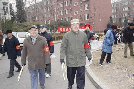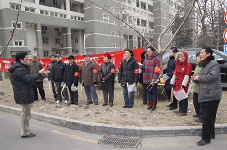 3月4日上午春寒料峭,但是依然挡不住大家参加学雷锋活动的热情。支部同志们在语言大学社区居委会工作人员的组织和带领下,积极响应,纷纷帮忙悬挂学雷锋的宣传条幅、分发宣传资料、自觉自愿地分头打扫社区环境卫生,大家还在室外集体激情合唱《学习雷锋好榜样》这支曲子,吸引了更多的居民一起参与其中。同时,为了更好地净化社区居住环境,大家还在不辞辛劳地在社区范围内捡拾狗屎,不怕脏不怕累,每个人手里都拿着一个特制的木夹子,仔细察看、逐一清理。