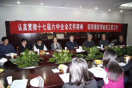2011年12月28日下午,学校关心下一代工作委员会在办公楼第三会议室召开学习十七届六中全会精神暨工作经验交流会。学校党委副书记、关工委主任赵旻、关工委副主任李连科、王静到会,学校关工委专、兼职委员、社科学院领导,以及各中国学生院系主管学生工作的负责人、学生辅导员和部分院系学生代表参加会议。