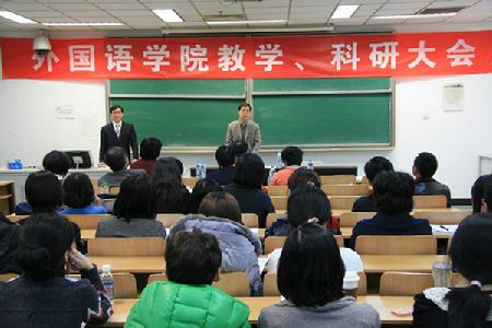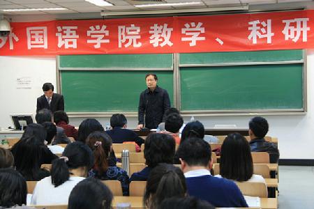 2011年12月23日至24日,外国语学院在我校召开2011年度教学研讨会和科研报告会。校党委赵旻副书记、曹志耘副校长出席会议,教务处、研究生院和科研处等相关职能部门负责人参加了会议。