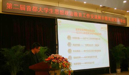 12月20日下午,由北京市委教育工作委员会主办的第二届首都大学生思想政治教育工作交流展示暨实效奖评审会在北京会议中心举行,来自北京大学、清华大学等二十余所高校代表参加了工作展示。我校党委副书记霍明杰出席会议并担任评委,校团委干部参加会议。