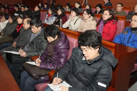 12月31日下午,科研项目申报培训会在我校逸夫楼报告厅举行,会议由韩经太副校长主持。北京市哲学社会科学规划办副主任李建平研究员与教育部资深评审专家、中央财经大学科研处处长孙宝文教授分别做了 “关于各级各类社科项目申报与管理”、“关于项目申报论证方法”的报告。