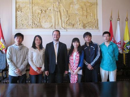 图片一:与雷利亚理工学院老师合照 图片二:雷利亚市副市长接见我校师生代表