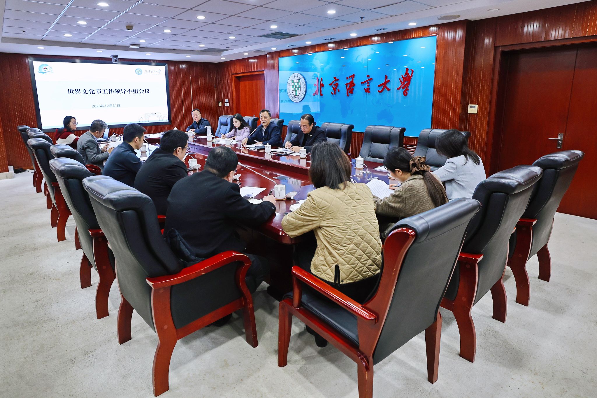 北语新闻网12月31日电(通讯员 刘丹丹 摄影 魏达)12月31日上午,我校第二十一届世界文化节工作领导小组会议在综合楼909召开,党委书记倪海东,党委常委、副校长黄益方出席会议,领导小组各成员单位负责人参加本次会议。