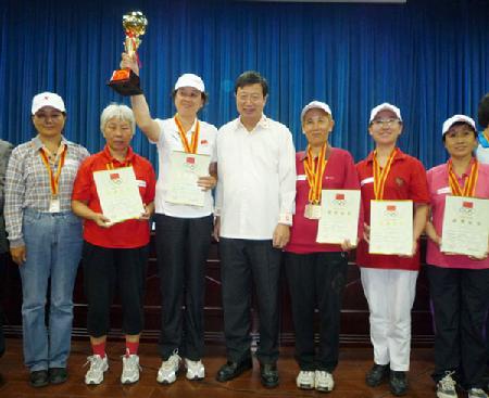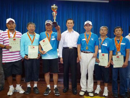 以校工会主席林国立为领队,校工会副主席徐英克为教练的北京语言大学木球队阵容强大。在本次比赛中,我校教工男、女木球队发挥出极高技战术水平。经过激烈拼搏,最终教工男、女再一次双双荣获团体冠军,实现了三连冠,创造了中国木球比赛的历史。在单项比赛中,王京芬(三连冠)、高美华、穆美山以及王京华分获女子单打第1、2、3、8名;梁云海、赵东风、刘跃分获男子单打第2、4、5名;梁云海/韩翠琴和赵东风/王京芬还分获男女混双第2、3名,又一次为北语赢得了荣誉。