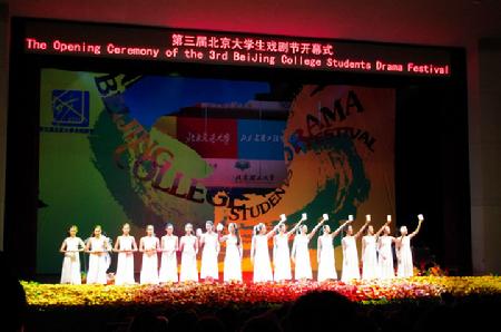 北京大学生戏剧节在中戏学生充满活力的小合唱《我的舞台》中拉开帷幕。大戏节组委会主任、中央戏剧学院副院长、评委会代表,以及大戏节形象代言人孙红雷分别上台发言并预祝本次大戏节圆满成功。配乐诗朗诵《我心中的戏剧》通过不同人物对戏剧的理解,体现了戏剧在生活中的魅力。
