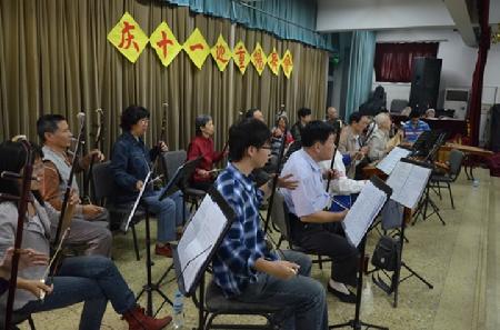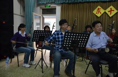 9月28日,我校民乐队队员与北语退休老教师们齐聚一堂,共同欢庆十一国庆以及重阳佳节的到来。灯光下载歌载舞的老人们与新老民乐队共同度过了一段美好时光。
