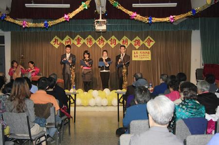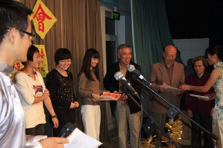 此次诗词朗诵会采取了比赛、表演与游戏相结合的形式。王恩保、孙钧政、李杨教授担任了比赛的评委。活动共有九支队伍参赛,由离退休同志和高翻学生共同组成“2+1”的代表队,围绕“贺‘九九(久久)’,庆重阳”的主线,按照自选和抽签的方式选定朗诵诗文。他们的朗诵抑扬顿挫,声情并茂,富有激情,赢得了现场观众的阵阵喝彩。老同志们展现了渊博的文化功底,大学生们也充分展示了自己清纯的朗诵天赋。
