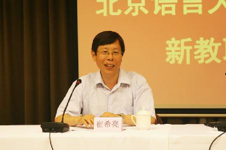 9月2日上午,崔希亮校长亲切接见了新教师,并对各位新来校工作的同志表示欢迎。见面会由人事处处长郑承军主持。在听完新教职工的自我介绍后,崔校长以一位和蔼的长者身份,平易近人地与新教师进行着沟通交流。崔校长首先代表学校欢迎大家加入了“北语”这个大家庭,并希望大家本着“即志存高远,又脚踏实地”的理念开始人生的新旅程。接着,崔校长介绍了学校的发展定位,学校目前正处于高速发展的阶段,各学科的全面发展需要全校教师员工付出更大的努力,因此崔校长殷切希望在座的新教师要尽快进入角色,熟悉学校文化,迅速融入到北京语言大学这个多元文化并存的学校中来。作为在对外汉语教学及研究领域有着很深造诣的学者,崔校长还结合对外汉语教学中的生动案例给新教师提出了一些具体的教学要求,并期望大家要做个有心人,在教学过程中时时留心,找出有价值的问题并争取做出成绩。最后,崔校长希望各位新职工能尽快找到学术梯队,让自己在北语的生活更加充实,乐观、充满信心地度过每一天。